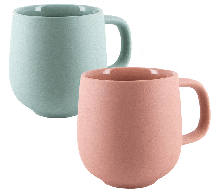We offer two unique summery colors. Choose a brick mug to bring a touch of warmth to your kitchen. Choose from a sage mug to complement your gourmet treats in soft, natural tones.